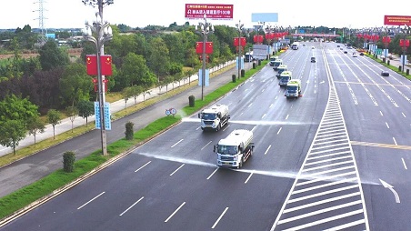 清晨的仁壽大道上,霧炮車噴灑的氤氳水霧,映現(xiàn)出一道清新彩虹;天府大道上,機械化作業(yè)編隊有序推進,留下潔凈路面與和諧的城市韻律;水體公園中,靈活的小型設備穿梭于碧水藍天之間,守護著城市的詩意棲居,一幅"城在林中、路在綠中、人在景中"的生態(tài)畫卷正徐徐展開。在盈峰環(huán)境的專業(yè)服務下,大美仁壽,這座千年古城正煥發(fā)時代新韻。