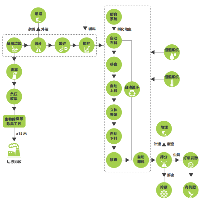 智能收運 + 預處理 + 昆蟲處理技術 + 有機產(chǎn)品加工 + 臭氣處理