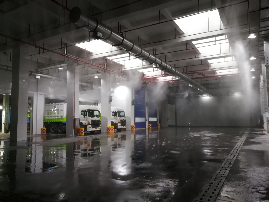 除裝備本身密封性強之外,整個轉運站卸料大廳、卸料口及轉運大廳,引入了負壓抽風除塵除臭系統(tǒng)和空間噴淋除臭系統(tǒng),全方位除塵除臭。