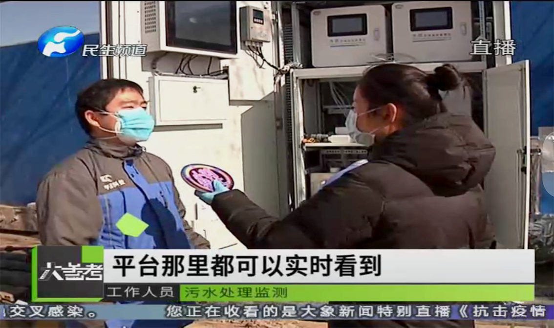 當?shù)孛襟w采訪盈峰科技運維人員,報道岐伯山醫(yī)院醫(yī)療廢水處理情況