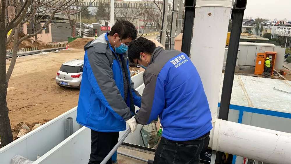 設(shè)備投入運行,兩套一體站安裝在醫(yī)院隔離區(qū)外,總占地不超過4㎡,系統(tǒng)采用全封閉管路,保證維護人員的安全,可隨時進行維護,確保監(jiān)測數(shù)據(jù)準確。